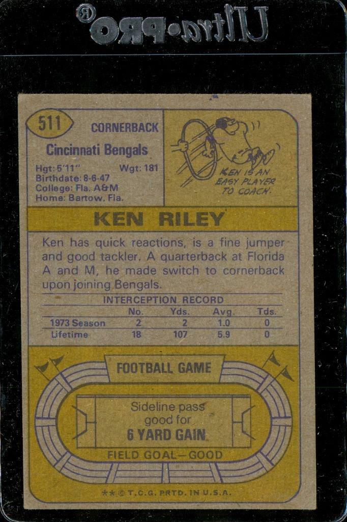 Vintage FOOTBALL Trading Card 1974 Topps #511 Ken Riley Cornerback Bengals