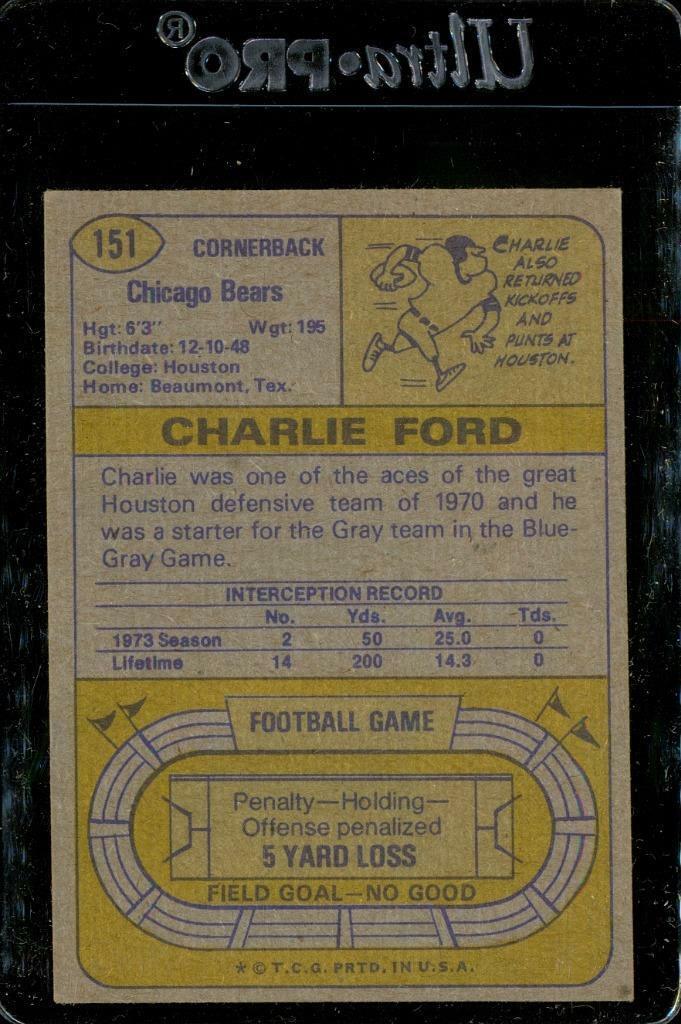 Vintage FOOTBALL Trading Card 1974 Topps #151 Charlie Ford Cornerback Bears - light corner bumping.