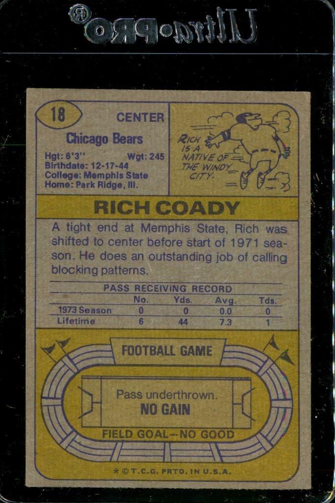 Vintage FOOTBALL Trading Card 1974 Topps #18 Rich Coady Center Bears