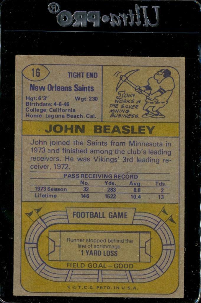 Vintage FOOTBALL Trading Card 1974 Topps #16 John Beasley Tight End Saints