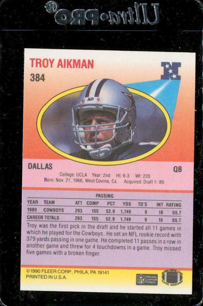 Vintage FOOTBALL Trading Card 1990 Fleer Troy Aikman QB Dallas Cowboys #384