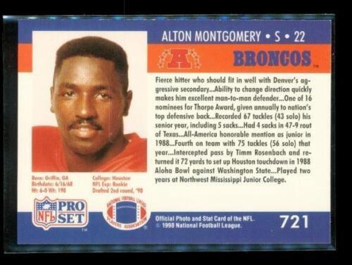 Vintage 1990 NFL PRO SET DRAFT Football Card #721 ALTON MONTGOMERY Broncos