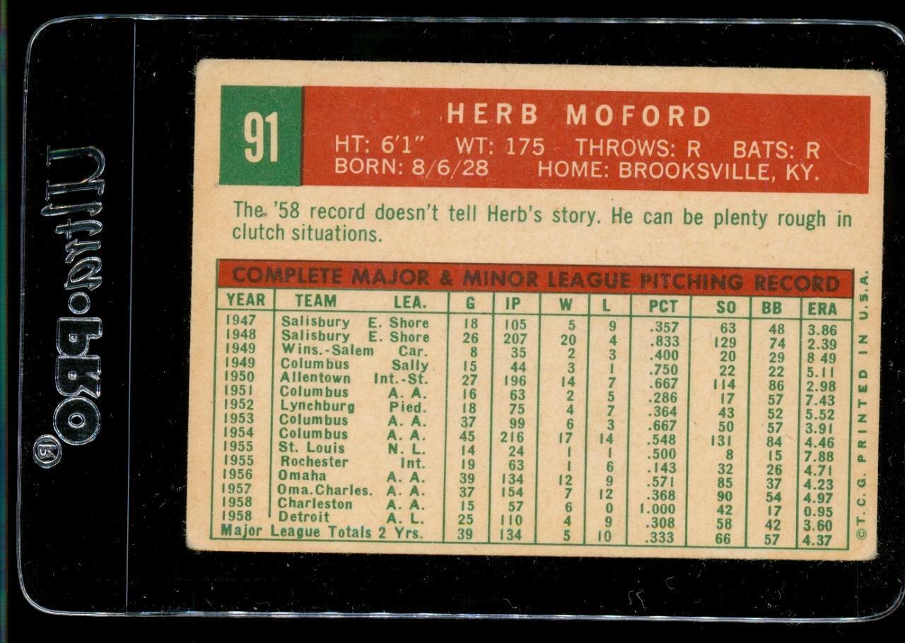 Vintage BASEBALL Trading Card TOPPS 1959 #91 HERB MOFORD Boston Red Sox WB. Light corner and edge wear noted.