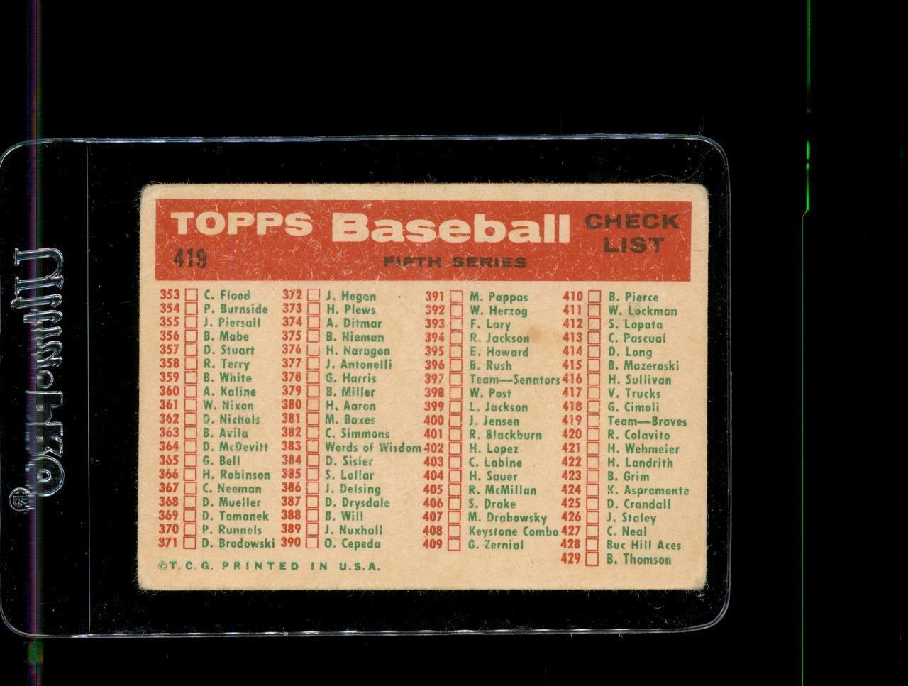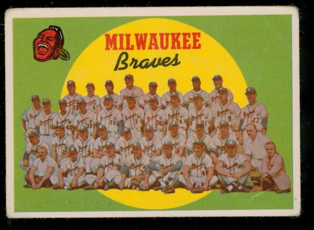 Vintage BASEBALL Trading Card TOPPS 1959 #419 MILWAUKEE BRAVES Team Card WB