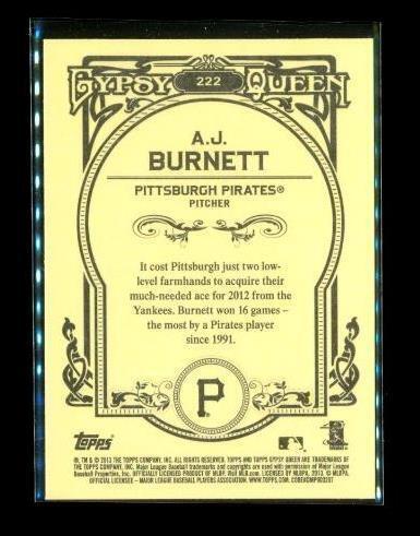 2013 TOPPS GYPSY QUEEN Baseball Trading Card #222 A.J. BURNETT Pittsburgh Pirates