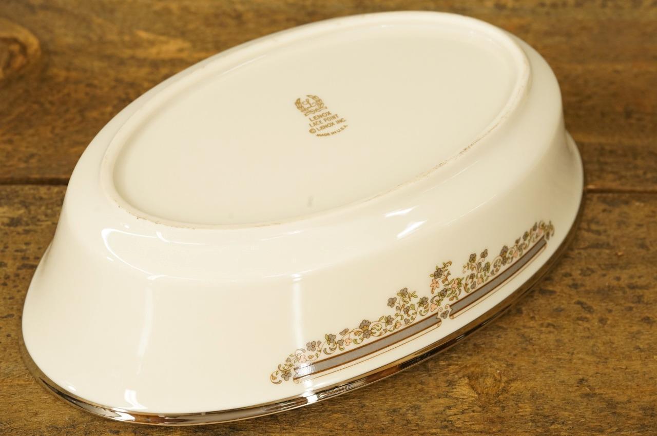 LENOX China LACE POINT Pattern Silver Trim 10" Curved Edge Vegetable Bowl. No chips or cracks. No smoke or pet odor. Signed on the base. Actual size 10.25" by 6-3/8"