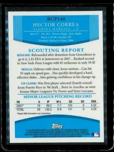 2008 Bowman Chrome Prospects Baseball Card BCP140 HECTOR CORREA Florida Marlins