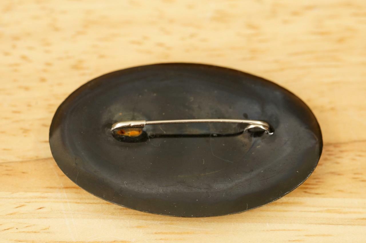 Vintage Costume Jewelry Hand Painted Wood Daisy Blue Flower Oval Brooch Pin