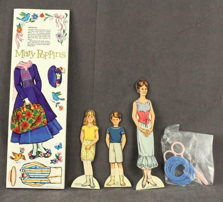 Vintage Walt Disney Productions Mary Poppins Magic Paper Dolls Box Set Toy - no smoke or pet odors. Direct from a local estate. Whitman 4621. Original stands and scissors present.
