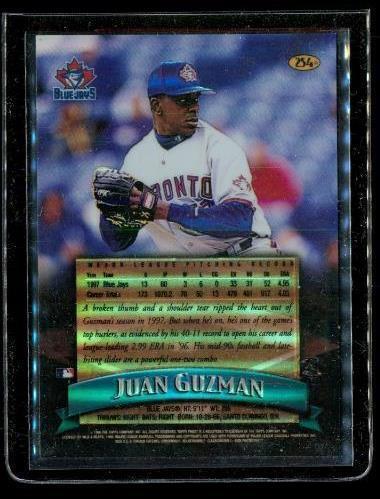 Vintage 1998 TOPPS FINEST Refractor Baseball Card #254 JUAN GUZMAN Blue Jays