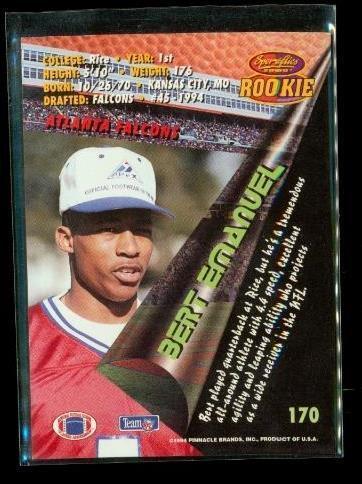 Vintage 1994 PINNACLE SPORTFLICS Rookie 3D Motion Football Card #170 BERT EMANUEL Atlanta Falcons