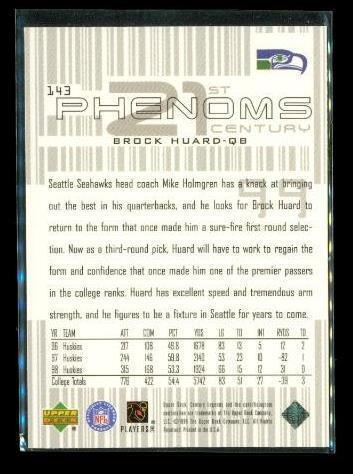 Vintage 1999 UPPER DECK CENTURY LEGENDS Football Card #143 BROCK HUARD Seahawks