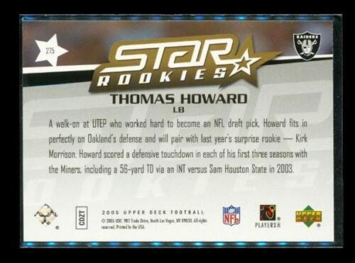 2006 UPPER DECK STAR ROOKIES Football Trading Card #275 THOMAS HOWARD Las Vegas Raiders
