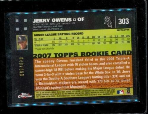 2007 TOPPS CHROME ROOKIE Refractor Baseball Card #303 JERRY OWENS Chicago White Sox Limited Edition 040/660
