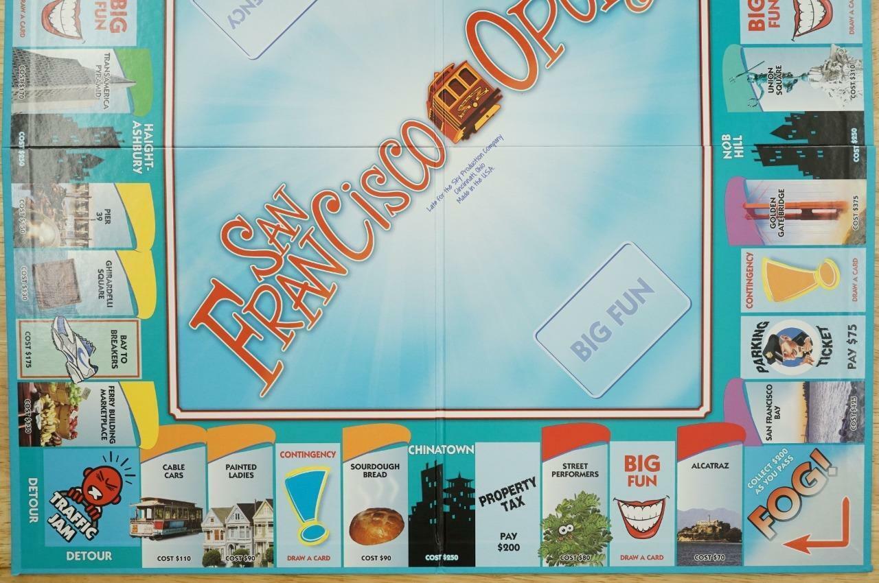 Late For The Sky SAN FRANCISCO Opoly City By The Bay Board Game Complete Crisp. Complete and well kept. Light wear to the outer box. Inner contents still sealed. No smoke or pet odors.
