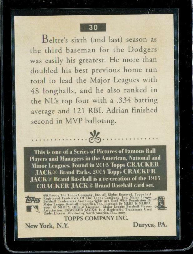 2005 TOPPS CRACKER JACK Baseball Trading Card #30 ADRIAN BELTRE Seattle Mariners