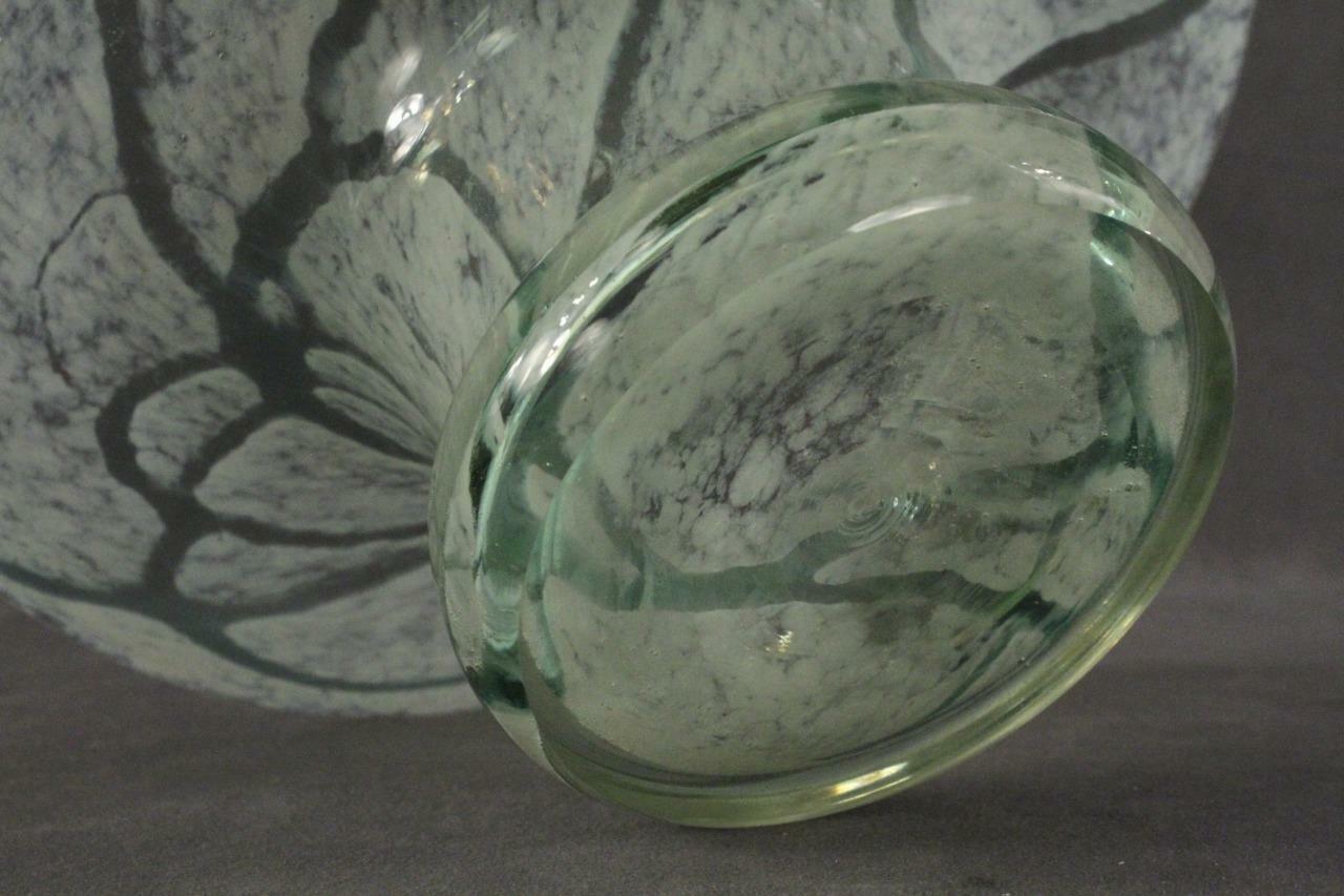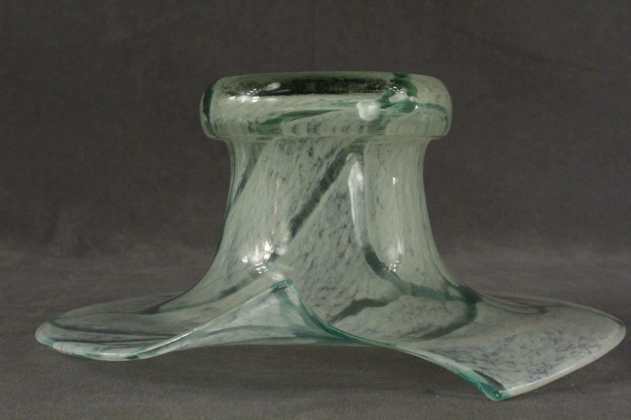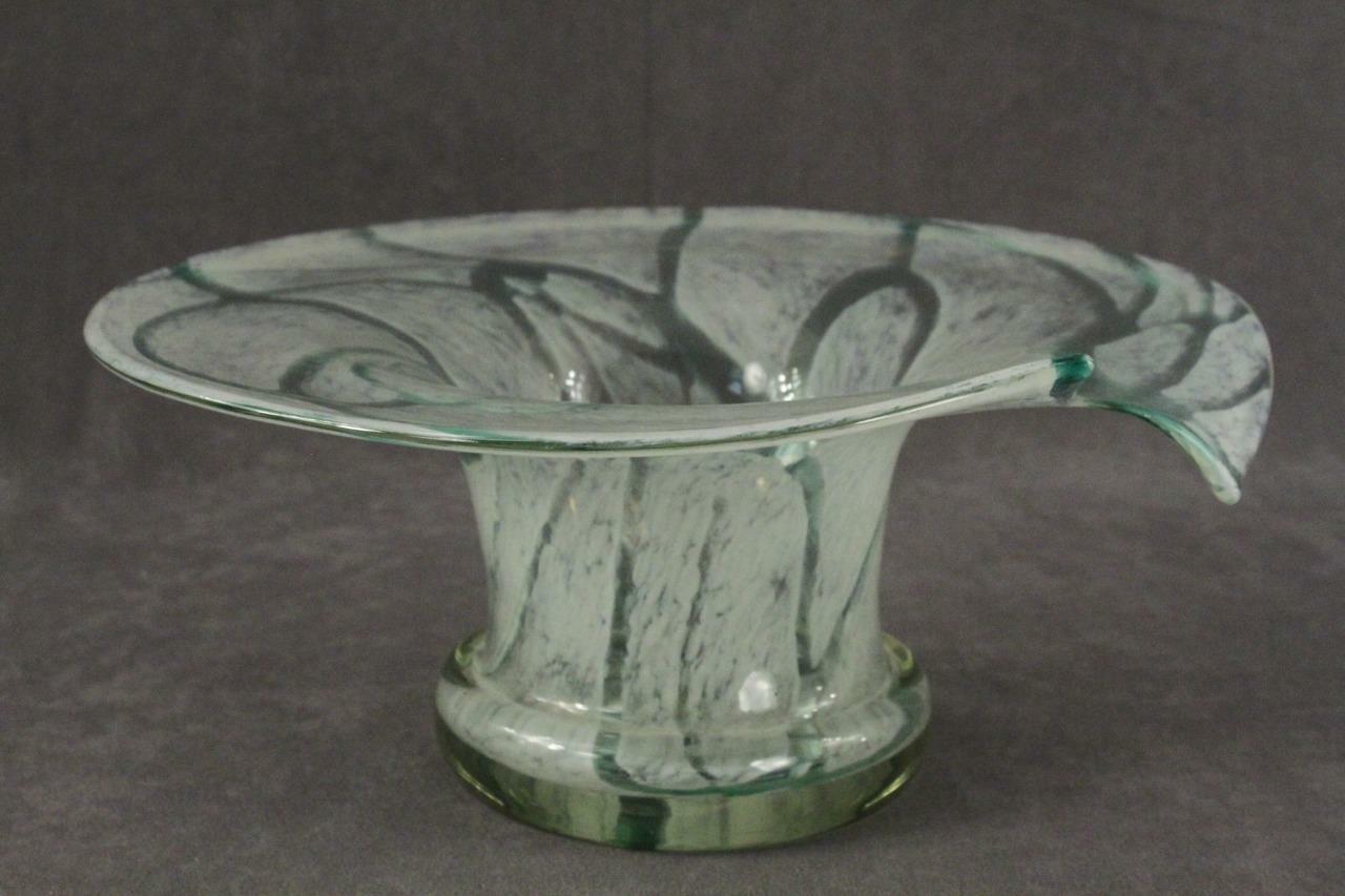 Contemporary Studio Art Glass Hand Blown Aqua Opalescent Pattern Console Bowl