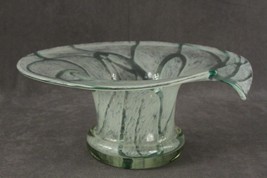 Contemporary Studio Art Glass Hand Blown Aqua Opalescent Pattern Console Bowl - measures 4.5" tall. Measures 10.75" across. Notched front lip. No chips or cracks. No smoke or pet odor.