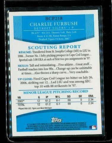 2008 Bowman Chrome Prospects Baseball Card BCP218 CHARLIE FURBUSH Detroit Tigers