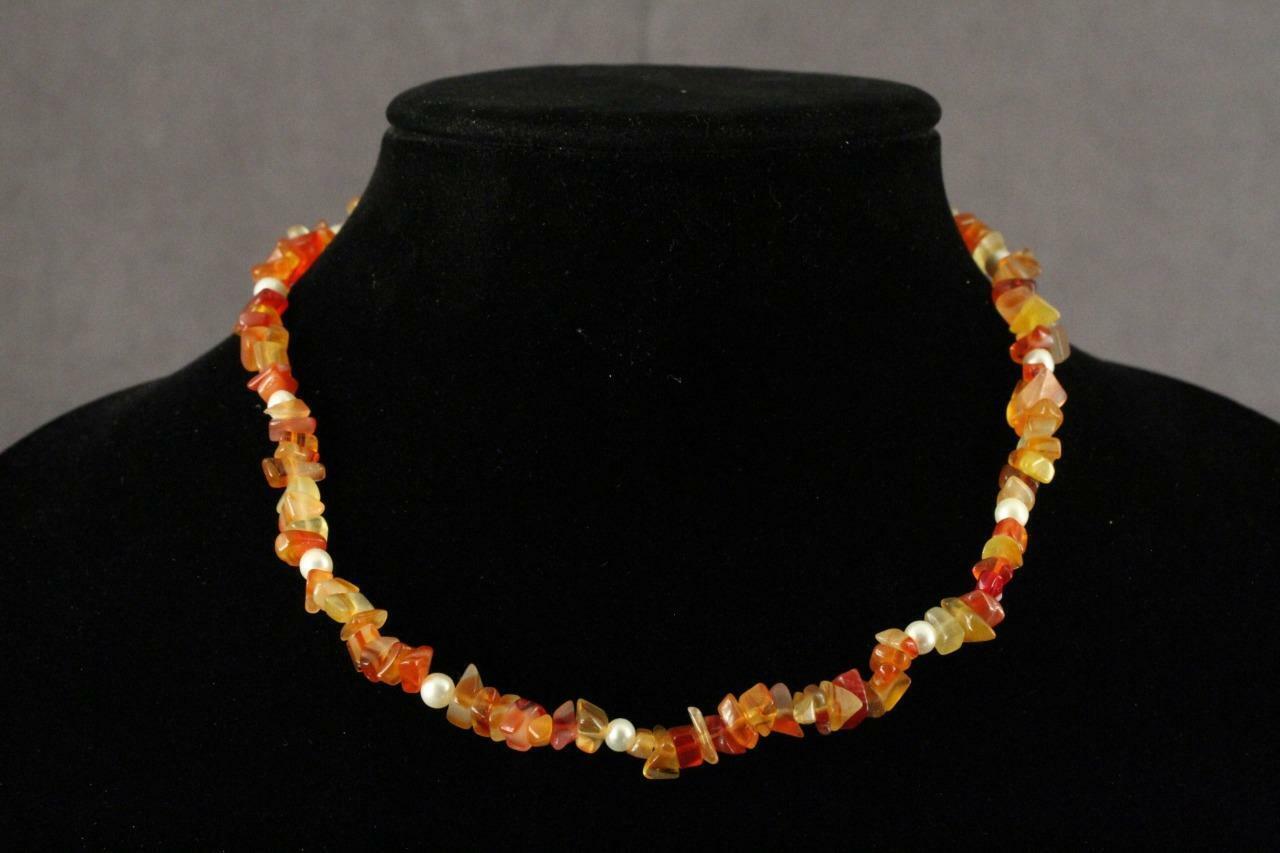 MODERN Sterling Silver Carnelian Gemstone Pearl Beaded TEXAS Longhorn Necklace - the sterling needs a light polish. 18" long.