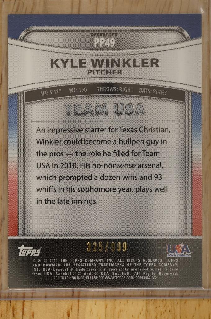 2010 Bowman Platinum Prospects Baseball Card KYLE WINKLER PP49 Refractor