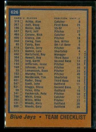 Vintage 1978 TOPPS Baseball Trading Card #626 TEAM CHECKLIST Toronto Blue Jays