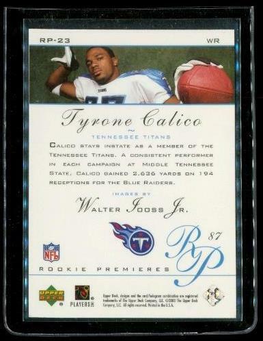 2003 UPPER DECK ROOKIE PREMIERS Football Card RP-23 TYRONE CALICO Titans