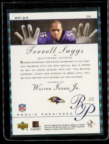 2003 UPPER DECK ROOKIE PREMIERS Football Card RP-29 TERRELL LUGGS Ravens
