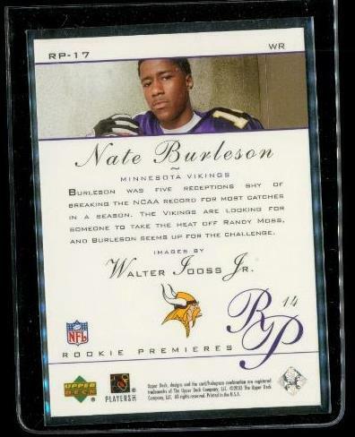 2003 UPPER DECK ROOKIE PREMIERS Football Card RP-17 NATE BURLESON Minnesota Vikings