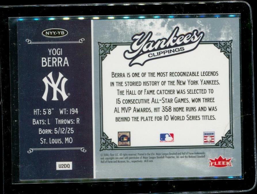 2006 FLEER GREATS OF THE GAME Baseball Card NYY-YB YOGI BERRA Yankees 1946-1963