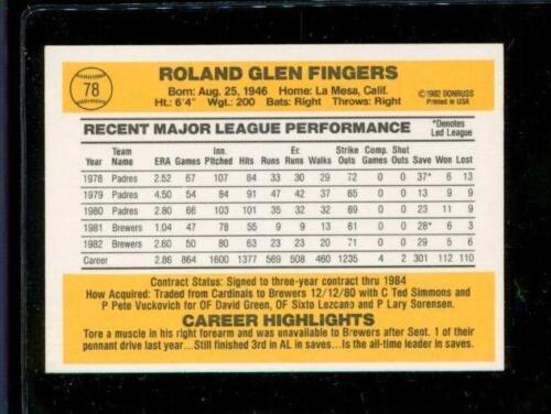 Vintage 1982 DONRUSS Baseball Trading Card #78 ROLLIE FINGERS Milwaukee Brewers