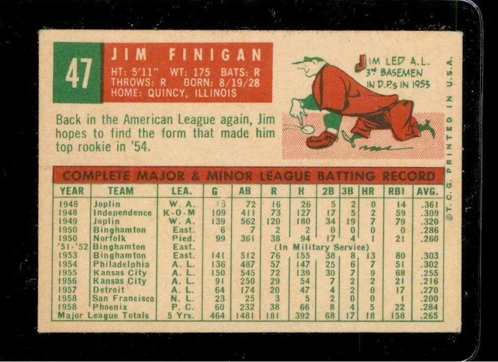 Vintage BASEBALL Card TOPPS 1959 #47 JIM FINIGAN Baltimore Orioles Infield WB