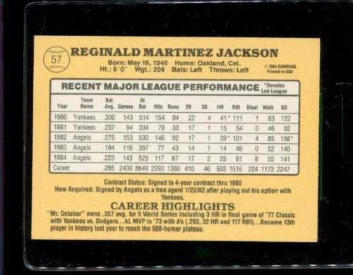 Vintage 1984 DONRUSS Baseball Trading Card #57 REGGIE JACKSON Anaheim Angels