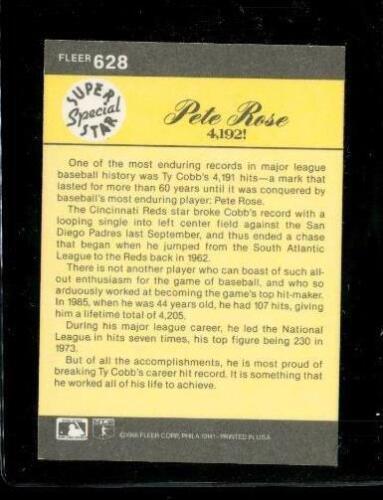 Vintage 1986 FLEER SUPER SPECIAL STAR Baseball Trading Card #628 PETE ROSE Cincinnati Reds