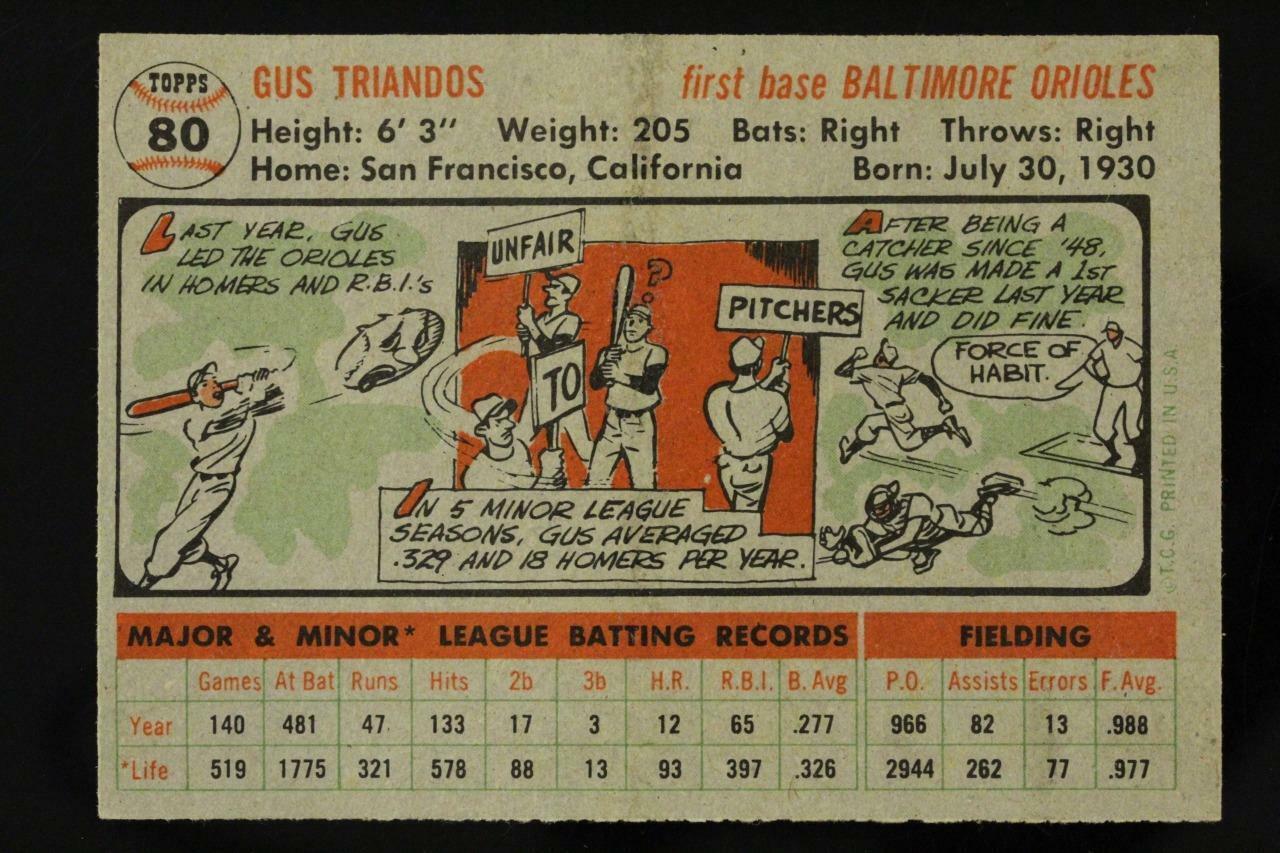 Vintage BASEBALL Card TOPPS 1956 #80 GUS TRIANDOS First Base Baltimore Orioles