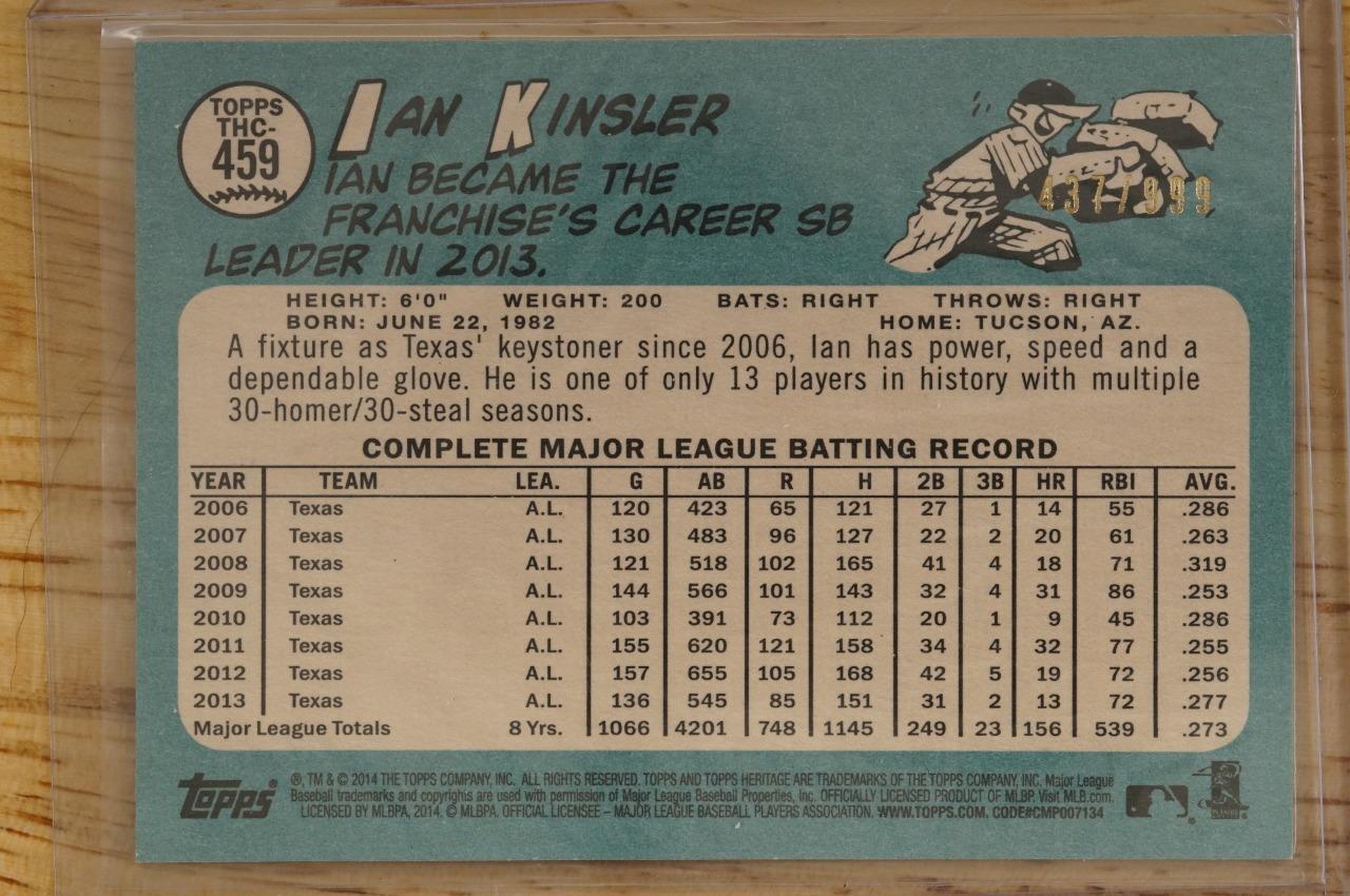 2014 Topps Heritage Baseball Card Chrome Foil #459 IAN KINSLER 437/999 Rangers