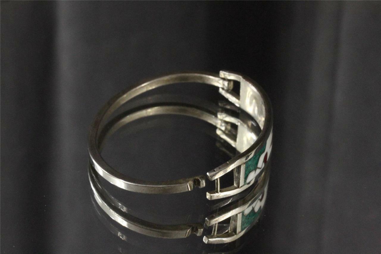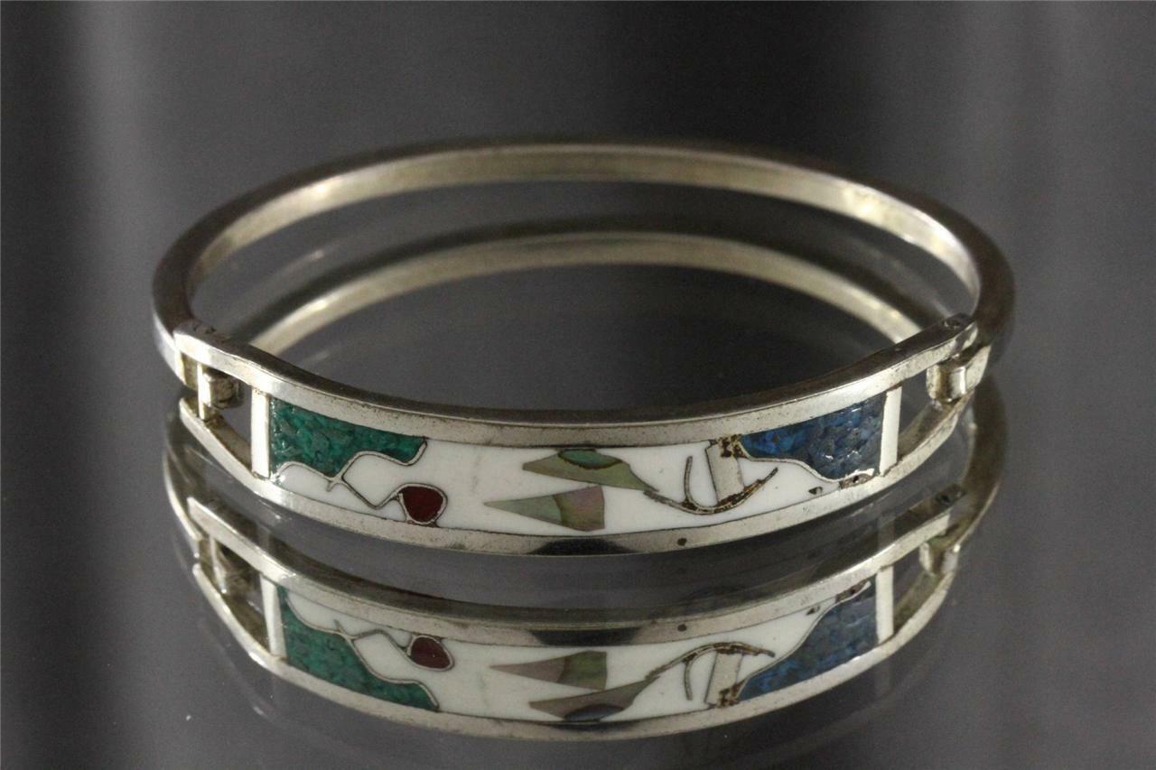 Vintage Costume Jewelry Alpaca Inlay Childs Baby Hinged Bangle Bracelet