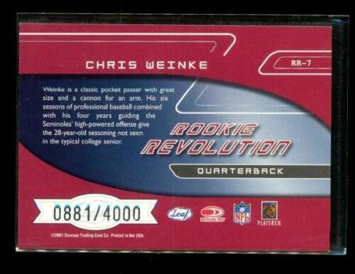2001 DONRUSS QUANTUM LEAF RC Chrome Football Card RR-7 CHRIS WEINKE Carolina Panthers Limited Edition 0884/4000