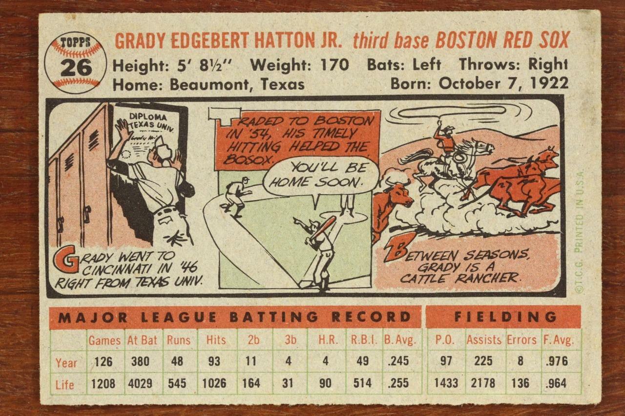 Vintage BASEBALL Card TOPPS 1956 #26 GRADY HATTON Third Base Boston Red Sox, lot B