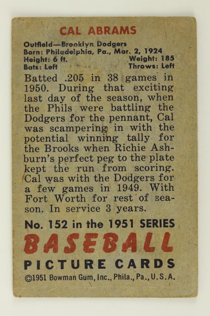 Vintage BASEBALL Card BOWMAN GUM 1951 #152 CAL ABRAMS Brooklyn Dodgers Outfield.