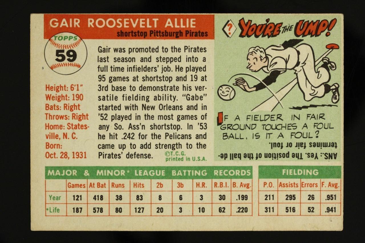 Vintage BASEBALL Card TOPPS 1955 #59 GAIR ALLIE Shortstop PITTSBURGH PIRATES