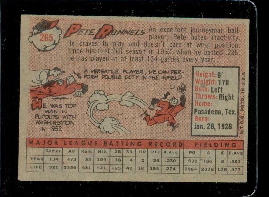 Vintage BASEBALL Trading Card TOPPS 1958 #265 PETE RUNNELS Boston Red Sox