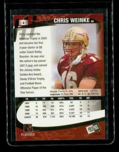 2001 PRESS PASS College Football Trading Card #4 CHRIS WEINKE Florida State Seminoles