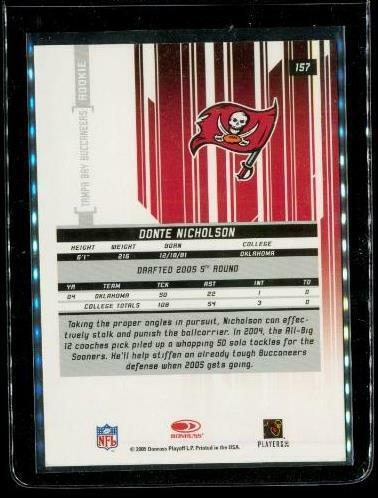 2005 DONRUSS LEAF ROOKIE STARS Football Trading Card #157 DONTE NICHOLSON Tampa Bay Buccaneers