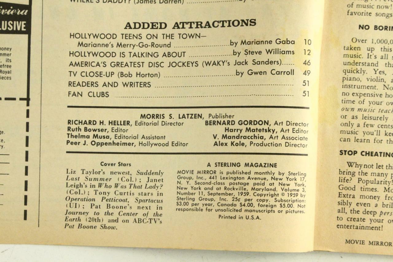 Vintage Hollywood Magazine MOVIE MIRROR Fabian Liz Taylor Edd Byrnes Sept 1959.