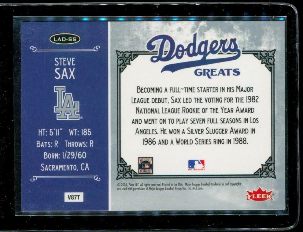 2006 FLEER GREATS OF THE GAME Baseball Card LAD-SS STEVE SAX Dodgers 1981-1988