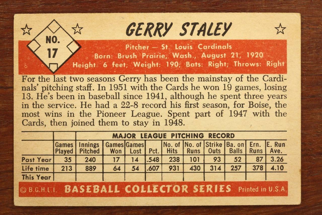 BASEBALL Card 1953 Bowman Color #17 GERRY STALEY Pitcher St Louis Cardinals