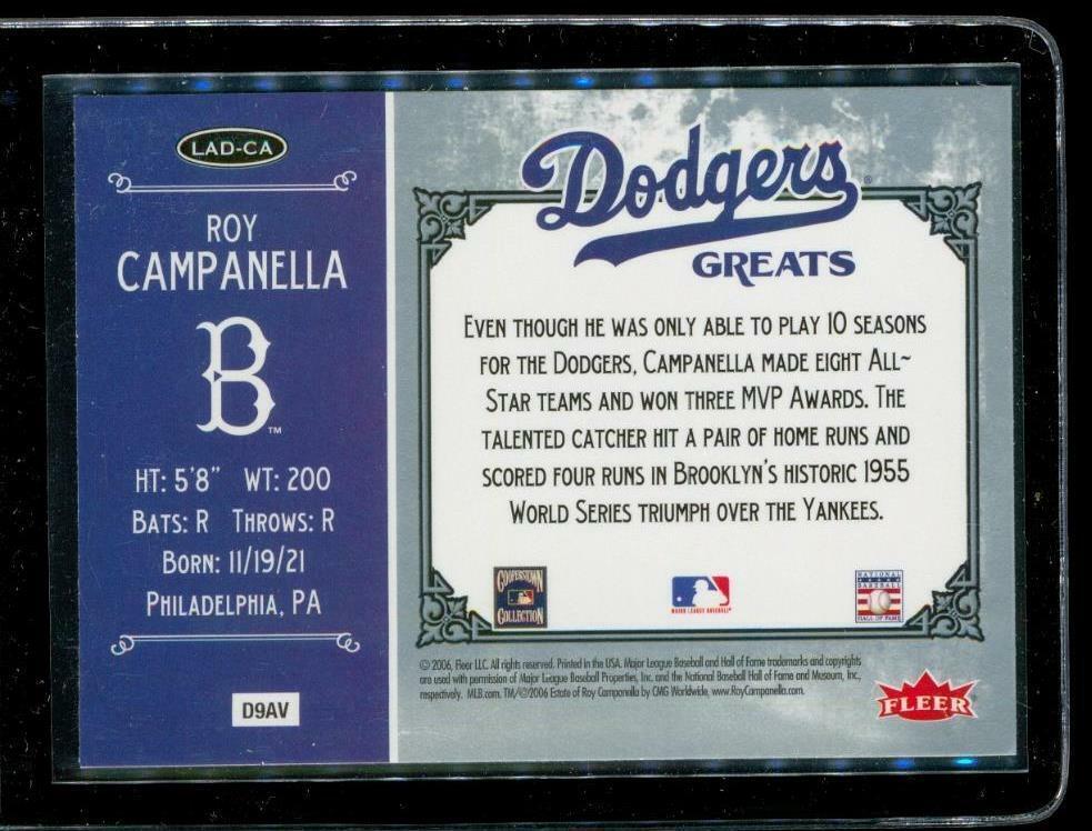 2006 FLEER GREATS OF THE GAME Baseball Card LAD-CA ROY CAMPANELLA Los Angeles Dodgers 1948-1957