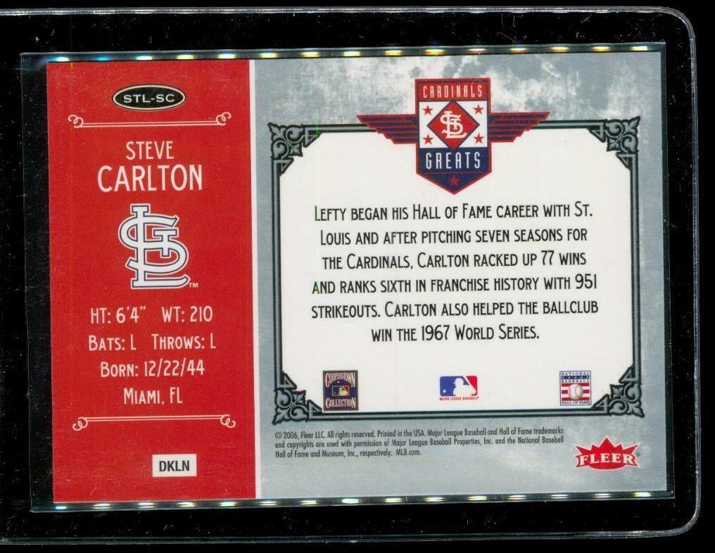 2006 FLEER GREATS OF GAME Baseball Card STL-SC STEVE CARLTON Cardinals 1965-1971