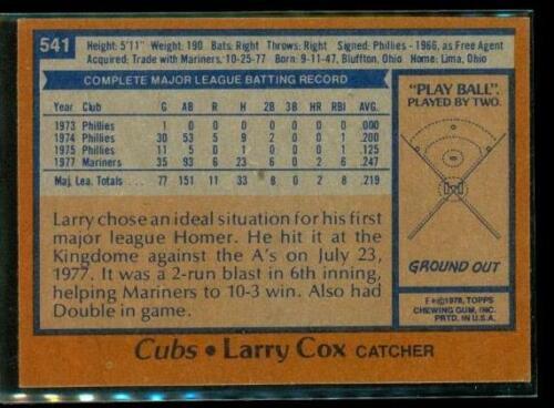 Vintage 1978 TOPPS Baseball Trading Card #541 LARRY COX Chicago Cubs
